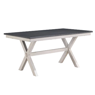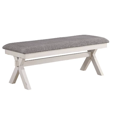 Create a modern farmhouse-style dining room with this two-toned table set. Antique white frames are complemented with subtle gray tabletop and fabric upholstered foam seats for a neutral design that welcomes every season. The trestle base of the table and bench display X-shaped legs to match that of the chair backs.