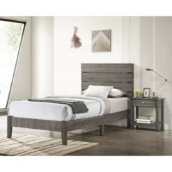 Geraldine Upholstered Headboard Poster Panel Bed Powder Coated Gun Metal – HOMES: Inside + Out