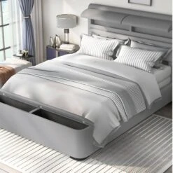 Hargerre Mid-Century Upholstered Bed With 4 Side Drawers – HOMES: Inside + Out