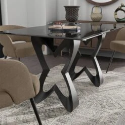 58″ Poppy Hill Modern Rectangle Glass Top Dining Table Black/Gray – HOMES: Inside + Out