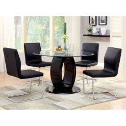 Stevenson Glass Insert Open Shelf W/Led Lights Dining Table Black – HOMES: Inside + Out
