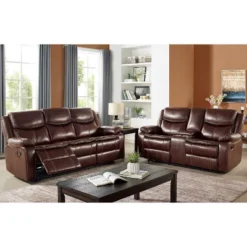 Orvis Bonded Leather Reclining Sofa Brown – HOMES: Inside + Out