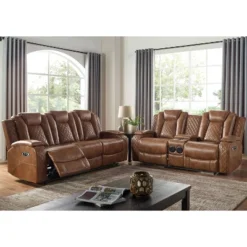 Edanola Upholstered Sofa With 2 Power Recliner And USB Plug Brown – HOMES: Inside + Out